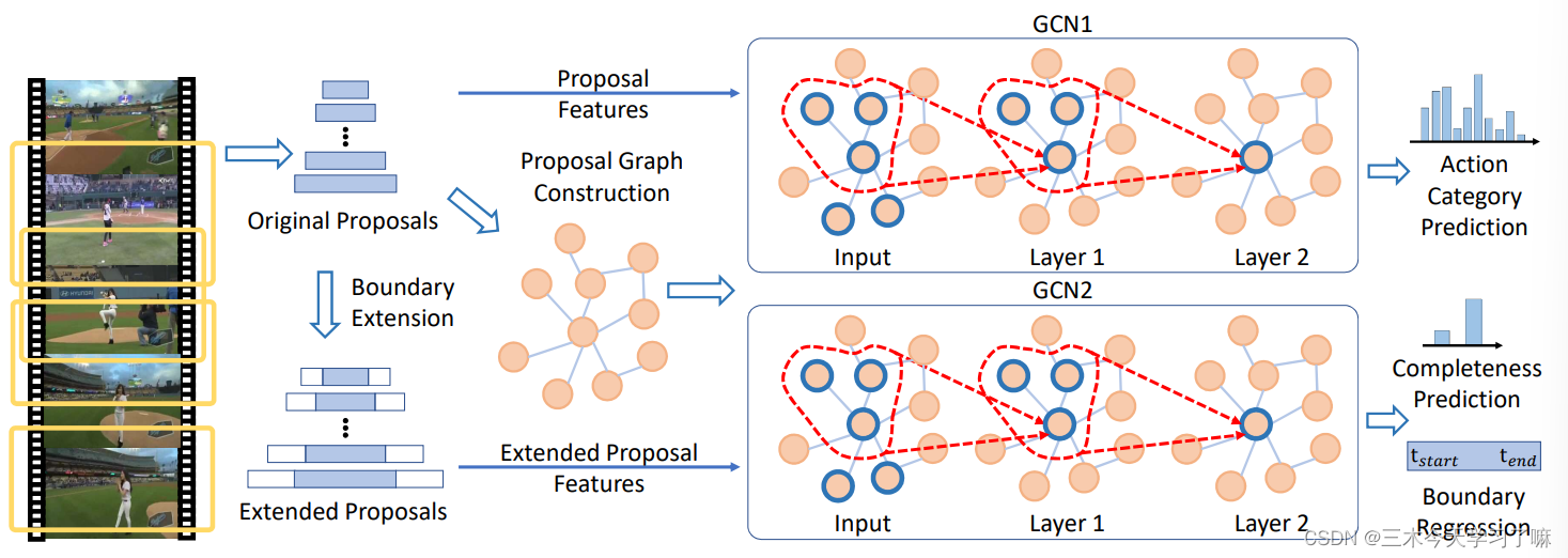 文章目录 1. BMN: Boundary-Matching Network for Temporal Action Proposal Generation 论文目的——拟解决问题 贡献——创新 实现流程 详细方法 2. MGG: Multi-granularity Generator for Temporal Action Proposal 论文目的——拟解决问题 贡献——创新 实现流程 详细方法 3. P-GCN: Graph Convolutional Networks for Temporal Action Localization 论文目的——拟解决问题 贡献——创新 实现流程 详细方法