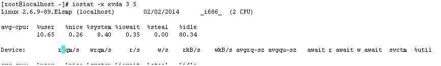 除了上面的方式外,还可通过输入iostat -x xvda 3 5 这样的方式来定时采样查看IO的消耗状况,执行如下: