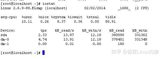 直接输入iostat命令,可查看各个设备的IO历史状况,如下图: